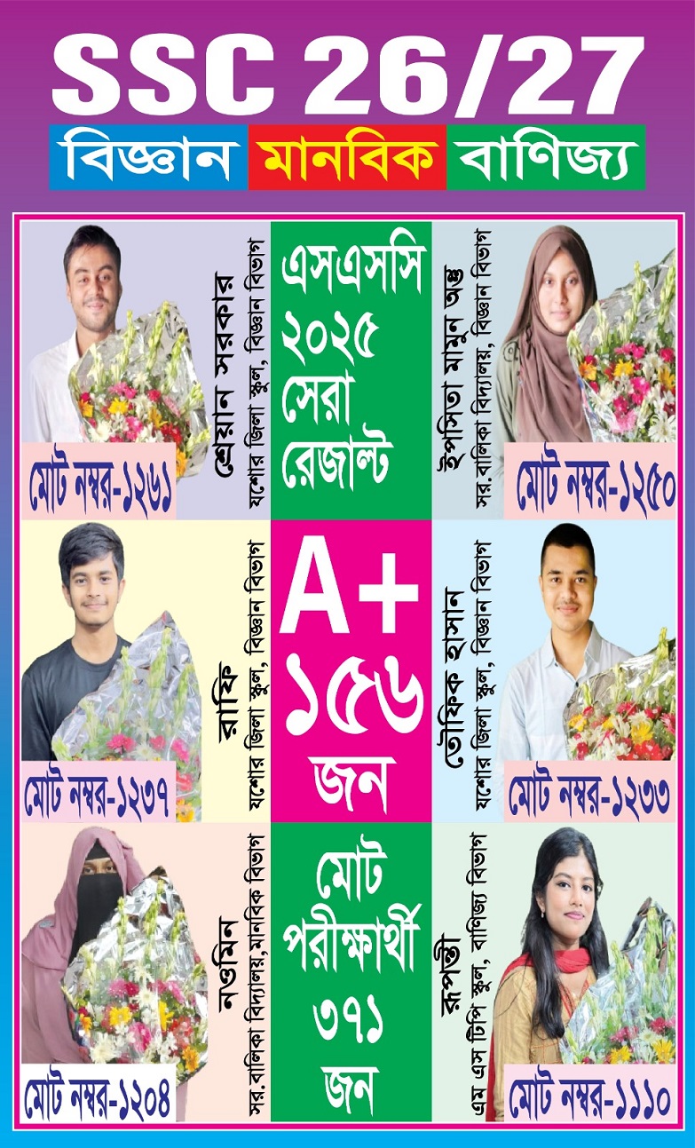 যশোর বোর্ডে ১ম সহ ২০২৪ সালে A+ পেয়েছে ১৪২ জন শিক্ষার্থী