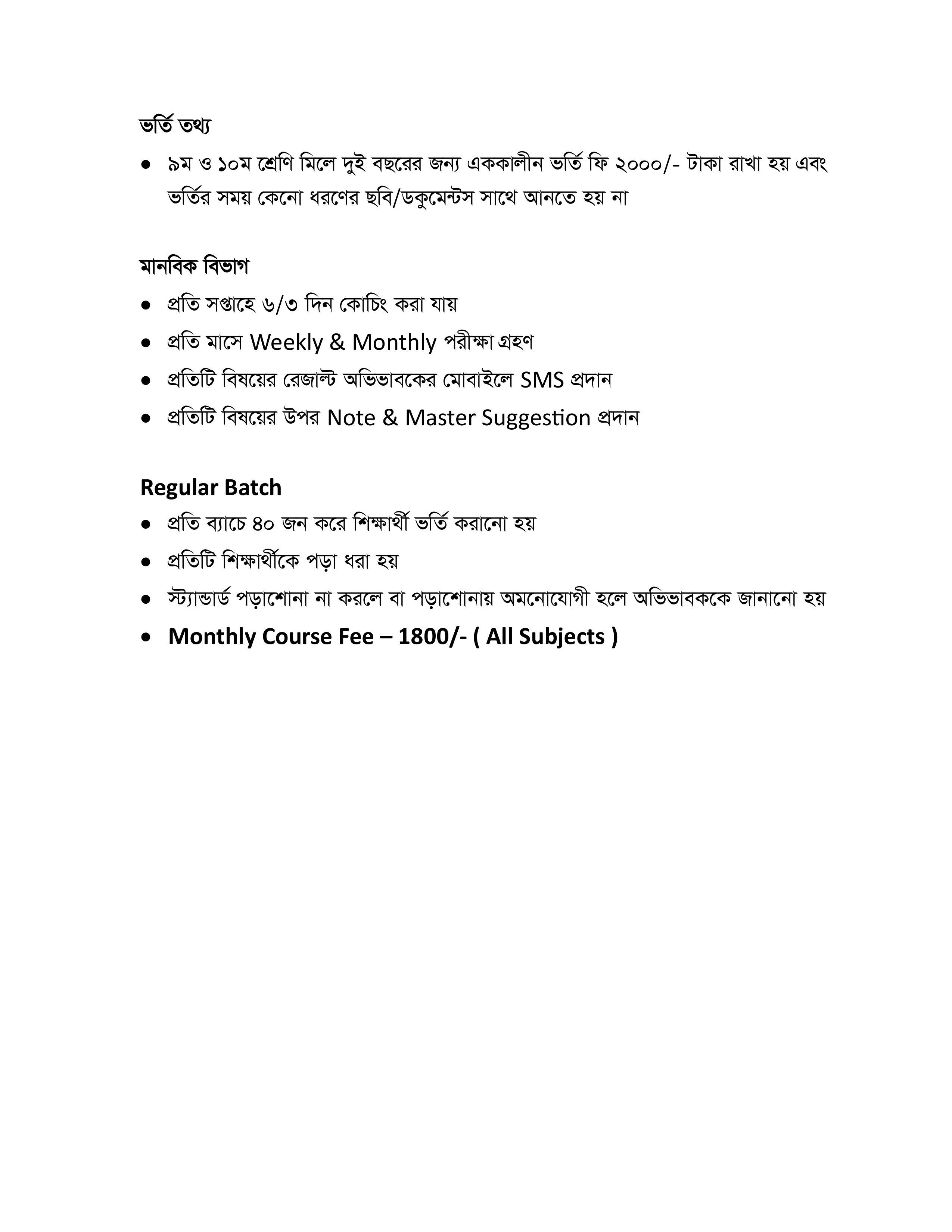 এক্সাম ব্যাচের ভর্তি তথ্য